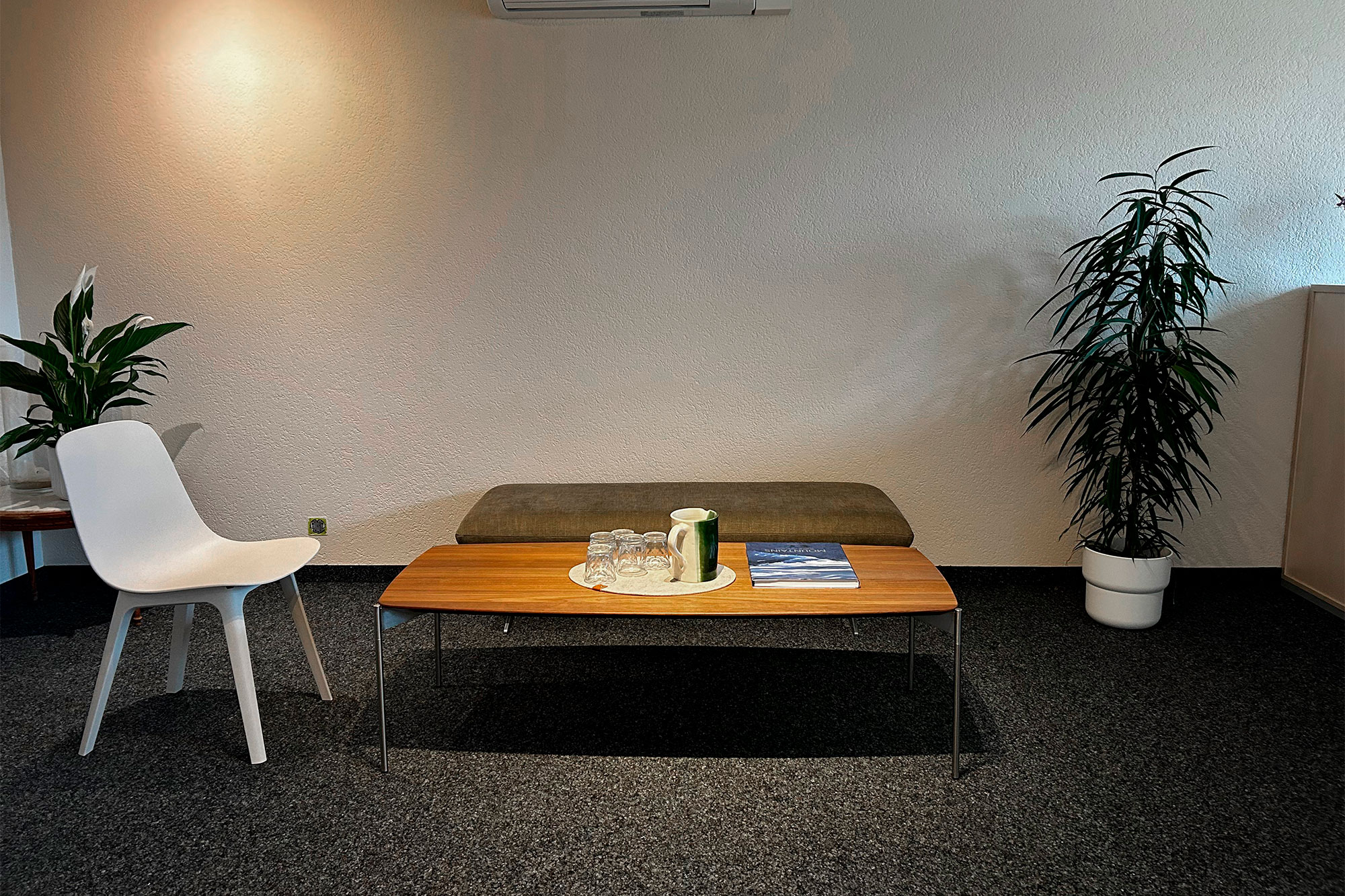 Unsere Praxis sorgt mit viel Licht und klaren Linien für eine ruhige Atmosphäre, damit du dich vom ersten Moment an entspannen kannst.